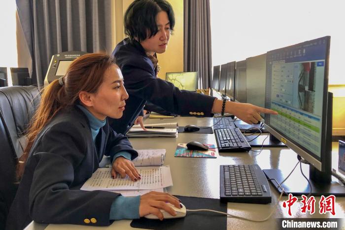 拉林鐵路信號監(jiān)測員扎西玉卓(左)和王麗佳對拉林鐵路沿線設(shè)備進行監(jiān)測。 馬生明 攝