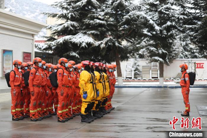 圖為消防員集結(jié)出動。索朗旺久 攝