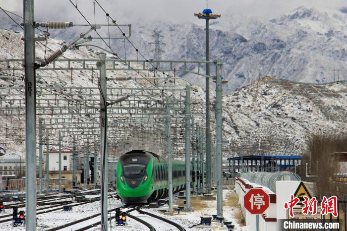 圖為日喀則方向動(dòng)車組進(jìn)入拉薩車站。 李海星 攝