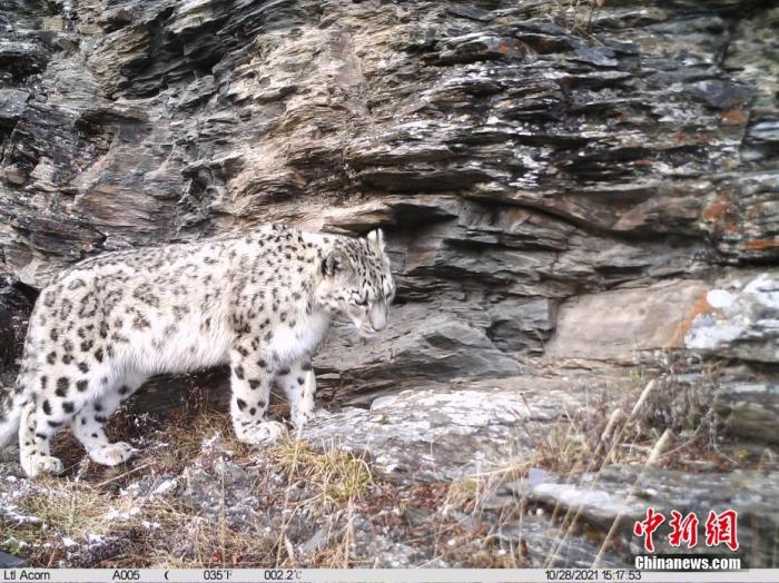 資料圖為2021年10月28日在西藏自治區(qū)丁青縣境內由紅外相機拍攝到的雪豹活動影像。 中新社發(fā) 山水自然保護中心 供圖