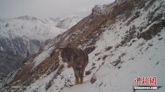 資料圖為2021年11月4日在西藏自治區(qū)丁青縣境內由紅外相機拍攝到的狼活動影像。 中新社發(fā) 山水自然保護中心 供圖