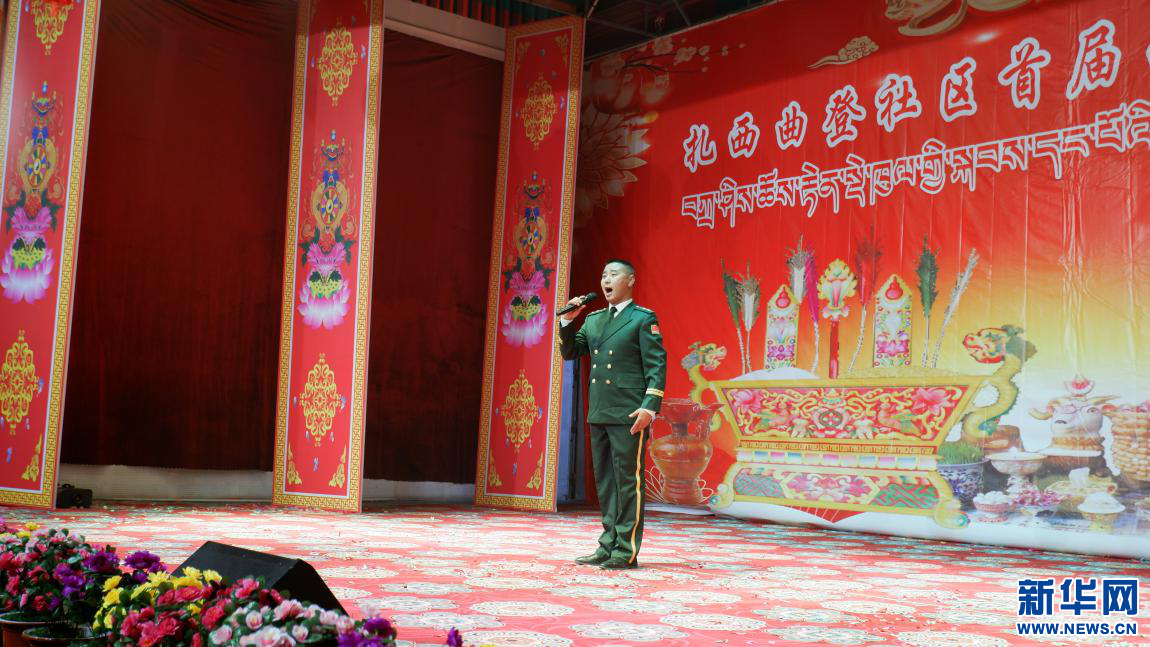 扎西曲登社區(qū)首屆藏歷新年晚會上的個人獨唱節(jié)目《陽光路上》(2月26日攝)。新華網 殷小燕 攝