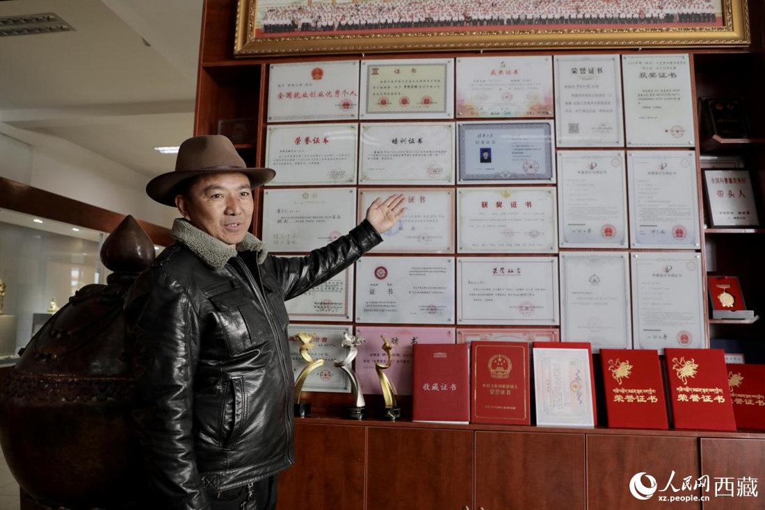 2012年傳承人羅布占堆獲中國(guó)工藝美術(shù)大師稱號(hào)。人民網(wǎng) 次仁羅布攝