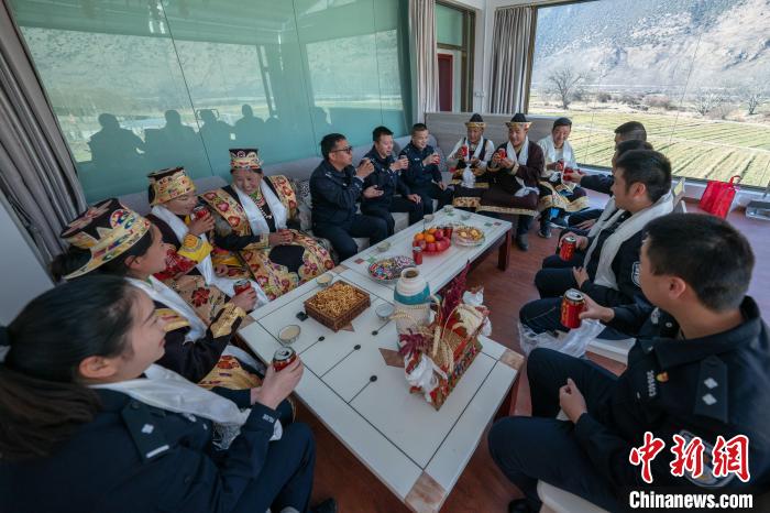 圖為轄區(qū)民眾在林芝市米林縣派邊境派出所內(nèi)和民警一起過(guò)新年。江才云旦 攝