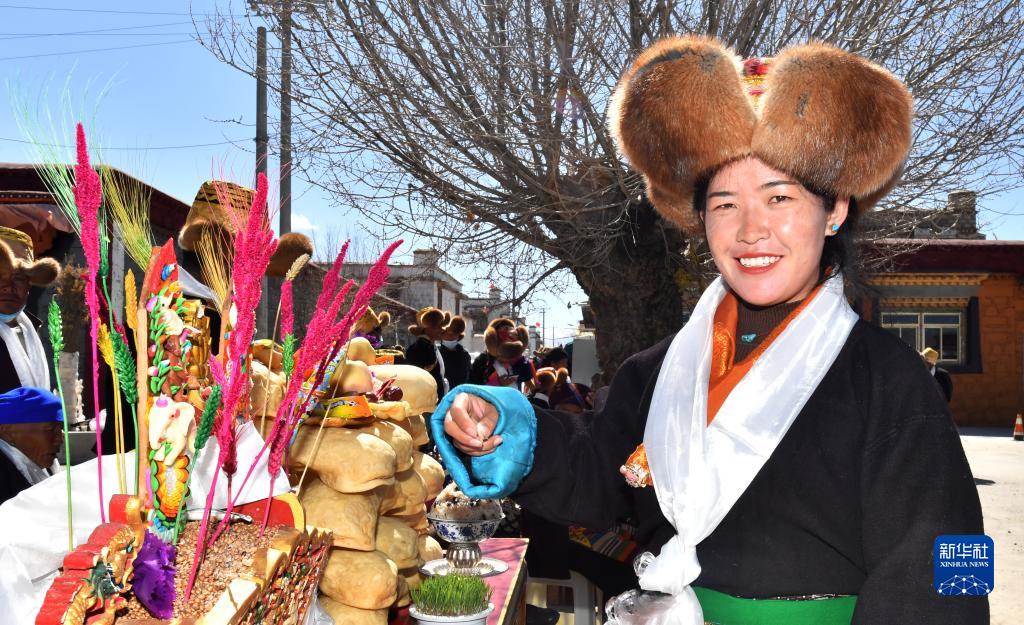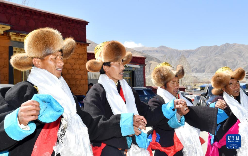 3月3日,西藏山南市貢嘎縣崗堆鎮(zhèn)群眾身著藏裝歡度藏歷水虎新年。新華社記者 覺果 攝