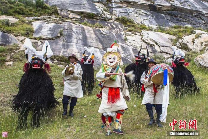 資料圖為桑珠帶領(lǐng)團隊表演協(xié)榮“仲孜”。 中新社記者 貢嘎來松 攝