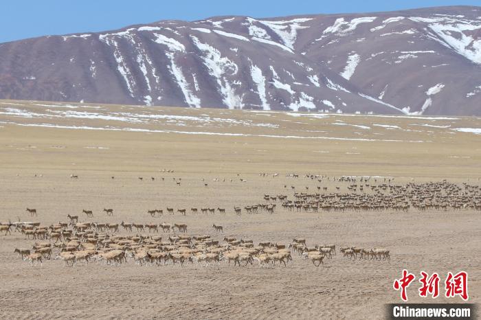 圖為3月27日,西藏改則縣先遣鄉(xiāng)附近的藏羚羊種群。邊巴 攝