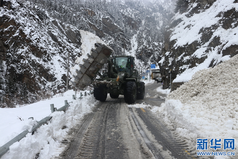 武警第二機(jī)動(dòng)總隊(duì)某支隊(duì)官兵正在清理雪崩積雪(4月4日攝)。新華社發(fā)(何欽攝)