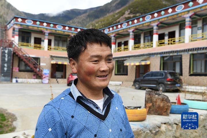 索松村村民拉巴在自家民宿前。 新華社記者 沈虹冰 攝
