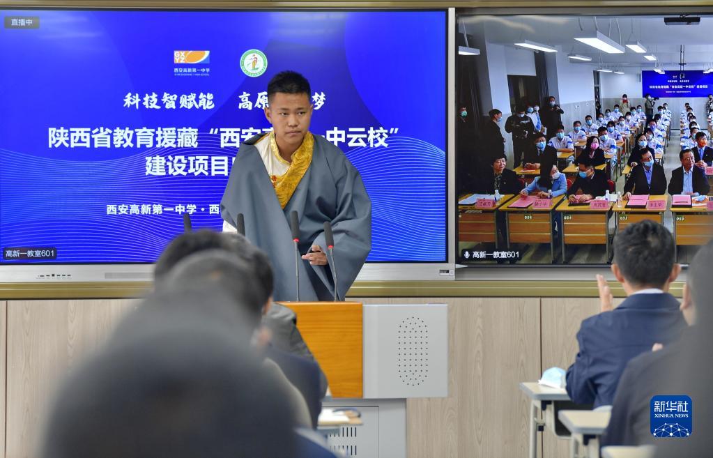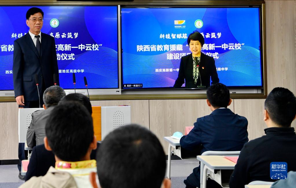 當(dāng)日,陜西省教育援藏“云校”建設(shè)項(xiàng)目正式啟動(dòng)。陜西省西安高新第一中學(xué)和西藏拉薩阿里地區(qū)高級(jí)中學(xué)結(jié)成“對(duì)子”,借助5G網(wǎng)絡(luò)開展教學(xué)教研互動(dòng),助力提升教育水平。