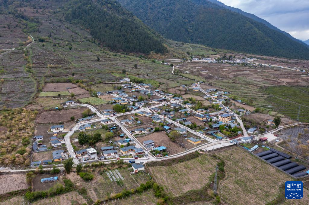 西藏林芝市察隅縣沙瓊村全景(4月19日攝,無(wú)人機(jī)照片)。