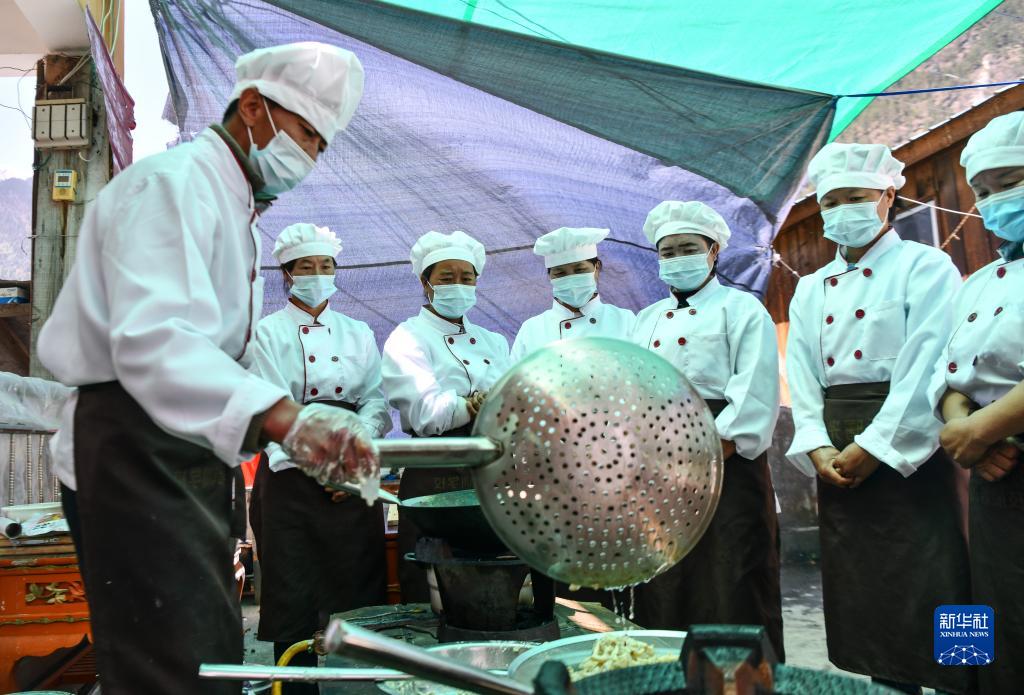 近日,在西藏林芝市察隅縣上察隅鎮(zhèn)西巴村,察隅縣人社局為當?shù)冂蟀妥迦罕娕e行“珞巴宴”培訓班,讓村民在家門口就能學習珞巴特色菜、藏餐、川菜、面點等烹飪技能。