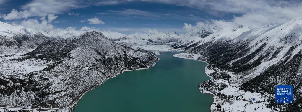 這是無人機拍攝的然烏湖(4月24日攝)。新華社記者 孫非 攝