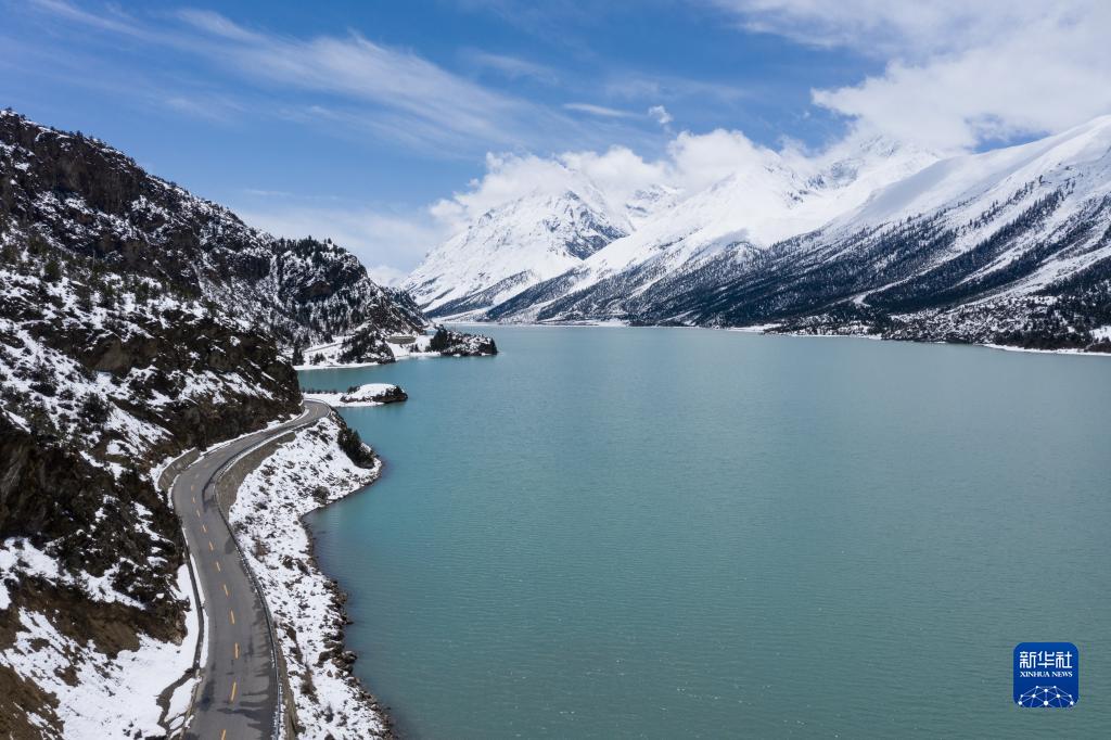 這是無人機拍攝的然烏湖(4月18日攝)。新華社記者 孫非 攝