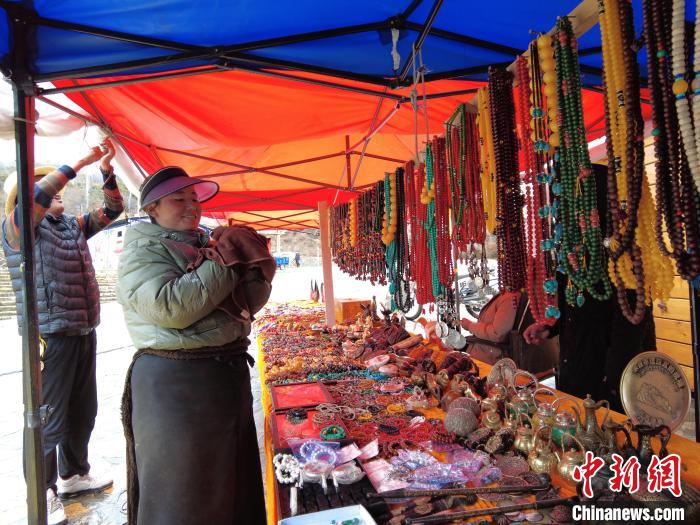 圖為尼瑪拉措在林芝市米林縣的南迦巴瓦觀景臺上擺攤賣貨。西藏自治區(qū)交通運輸廳供圖