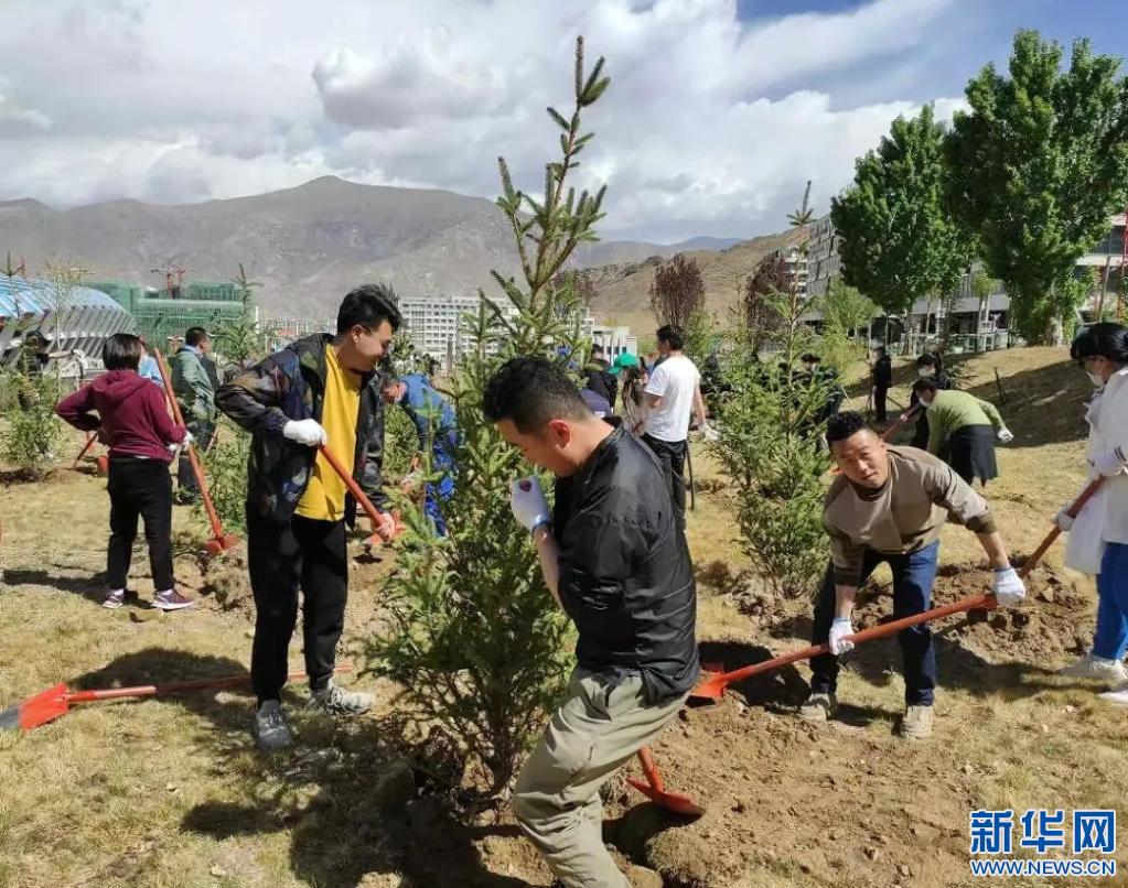 在植樹現(xiàn)場,大家揮鍬鏟土、澆水培樹,一派熱火朝天的勞動景象,留下在拉薩的“綠色回憶”。本次植樹造林活動共種下云杉、海棠、紫葉李、蘋果樹、丁香等樹木約2000株。志愿者們還將定期開展日常養(yǎng)護工作,鞏固綠化成果。