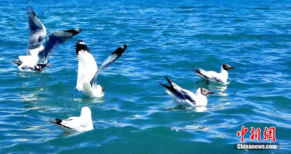 連日來(lái),班公湖晴空萬(wàn)里,在藍(lán)寶石般的湖面上,小白鳥(niǎo)自由游弋。貢桑拉姆 大象 嘎瑪次仁 攝