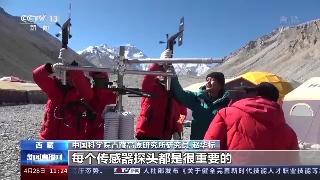 此次珠峰科考的一個(gè)重要任務(wù),是從海拔5200米到8800米搭建8個(gè)氣象站,其中4個(gè)在海拔7000米以上,它們的海拔分別在7028米、7790米、8300米和8800米。