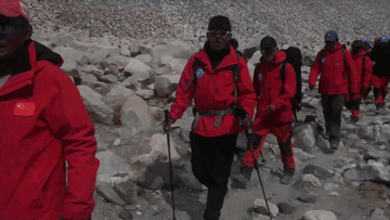 13名珠峰登頂科考隊員安全下撤到海拔5200米的珠峰登山大本營