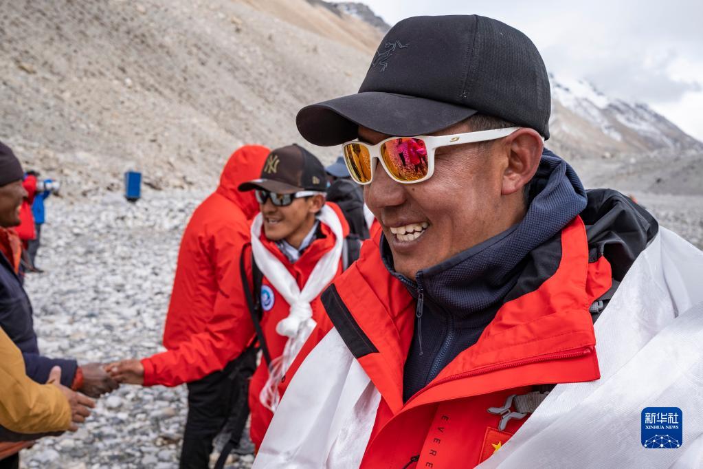 安全返回大本營的珠峰科考登頂工作小組副組長扎西平措,這是他第16次成功登頂珠峰(5月5日攝)。新華社記者 姜帆 攝