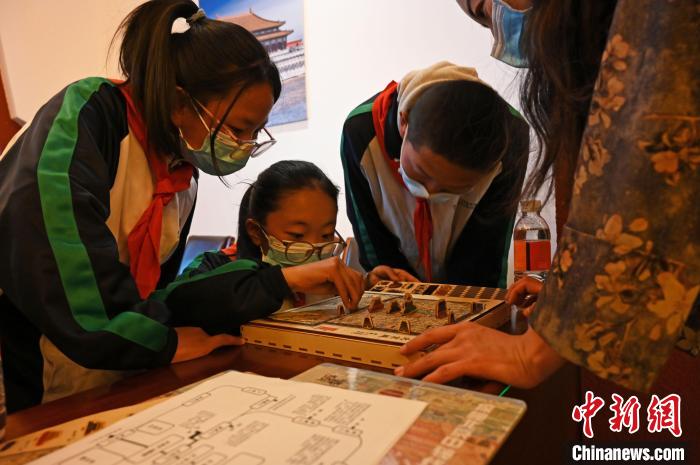 此次展覽的首場(chǎng)講解由拉薩市北京實(shí)驗(yàn)中學(xué)學(xué)生承擔(dān)?;顒?dòng)還邀請(qǐng)了在校學(xué)生體驗(yàn)了古建榫卯組裝、北京古城池拼圖等社教活動(dòng)。