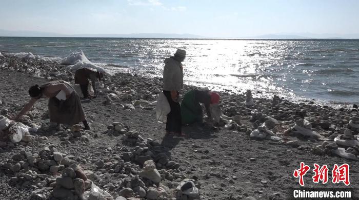 圖為牧民在瑪旁雍錯自然保護區(qū)內撿拾垃圾。貢桑拉姆 攝
