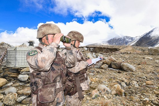 崗巴營(yíng)5592觀察哨戰(zhàn)士正在執(zhí)勤。 王乾 攝