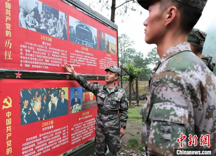 圖為官兵介紹中國共產(chǎn)黨黨史。 郝偉龍 攝