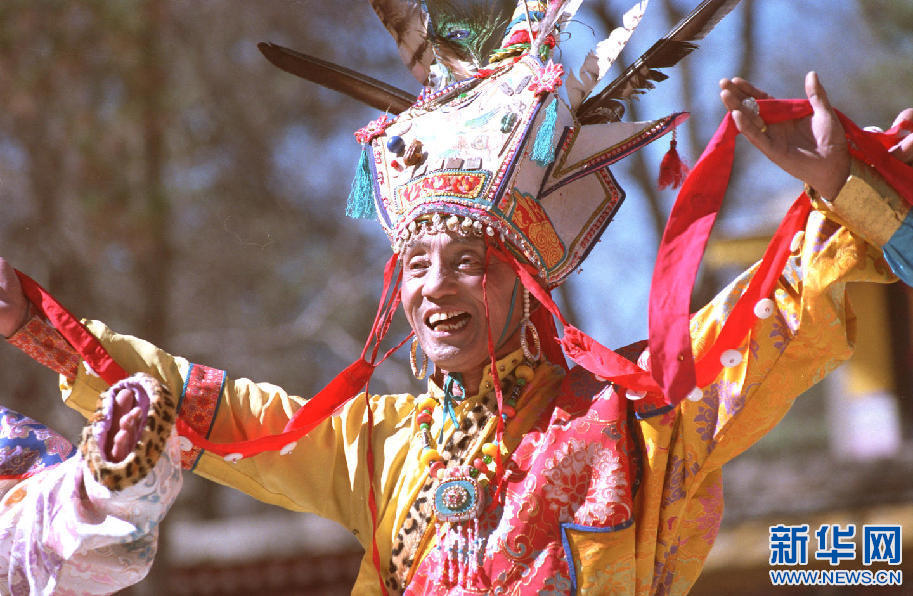 藏族藝術家土登說唱《格薩爾》史詩。新華社記者 覺果 攝(1997年11月28日發(fā))