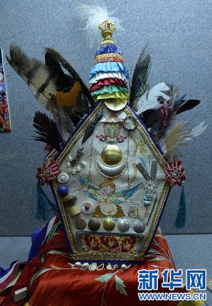 2015年5月17日,在西藏博物館拍攝的格薩爾王說唱藝人專用帽子。新華社記者 劉東君 攝
