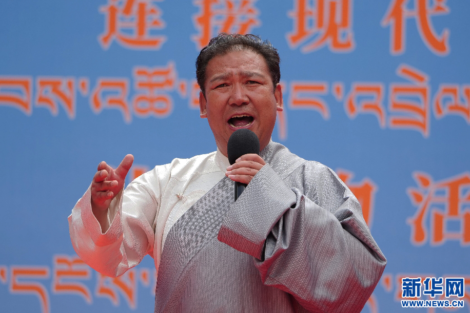 6月11日,著名藏戲表演藝術家邊點旺久在演唱傳統(tǒng)藏戲唱腔。新華網 旦增努布攝