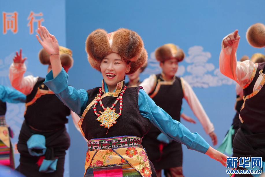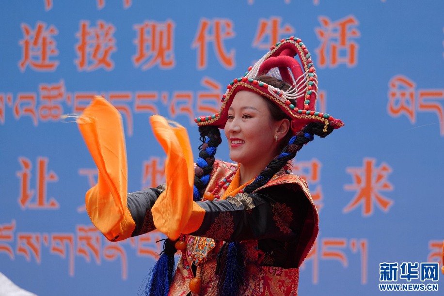 6月11日,西藏山南市貢嘎縣吉瓊村文藝演出隊在表演舞蹈《羊卓阿諧》。新華網 旦增努布攝