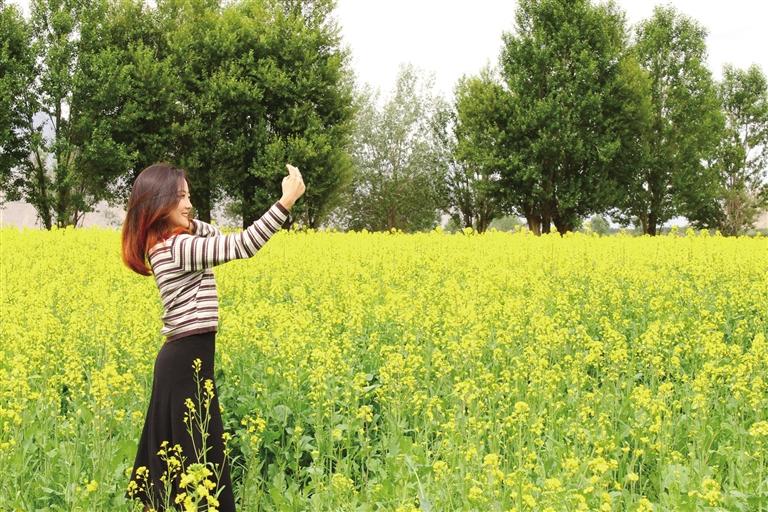 一到達孜區(qū),便可看到公路兩邊都是油菜花。記者來到塔杰鄉(xiāng)巴嘎雪村的油菜種植地,頓時被眼前的景色吸引,這里層層疊疊的油菜花海黃綠相映,在陽光的照耀下絢麗奪目,將大地渲染成“金黃海洋”,微風吹拂下,黃花綠葉的油菜花搖曳著曼妙身姿,清新婉約,當你置身油菜花海中,花香撲面而來,讓人心曠神怡。