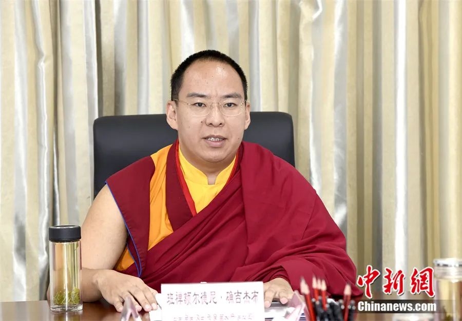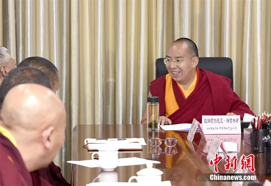 6月2日,班禪與藏傳佛教格魯派高僧座談中發(fā)言。中新社發(fā) 李林 攝