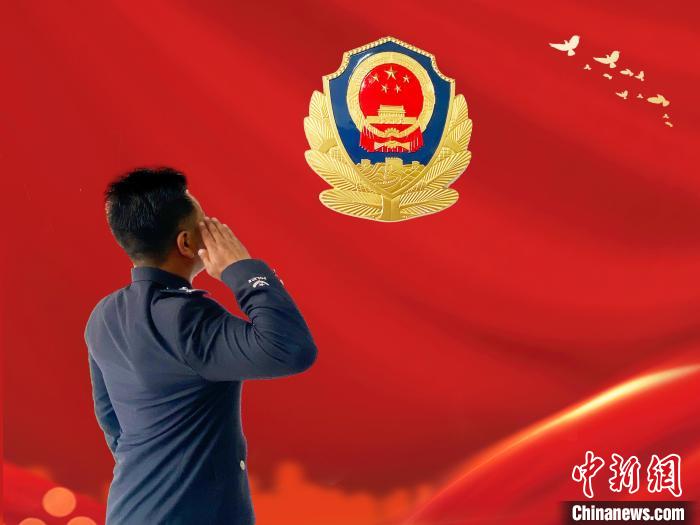 圖為尼瑪扎西向警徽敬禮?!∪湛t市公安局禁毒支隊供圖