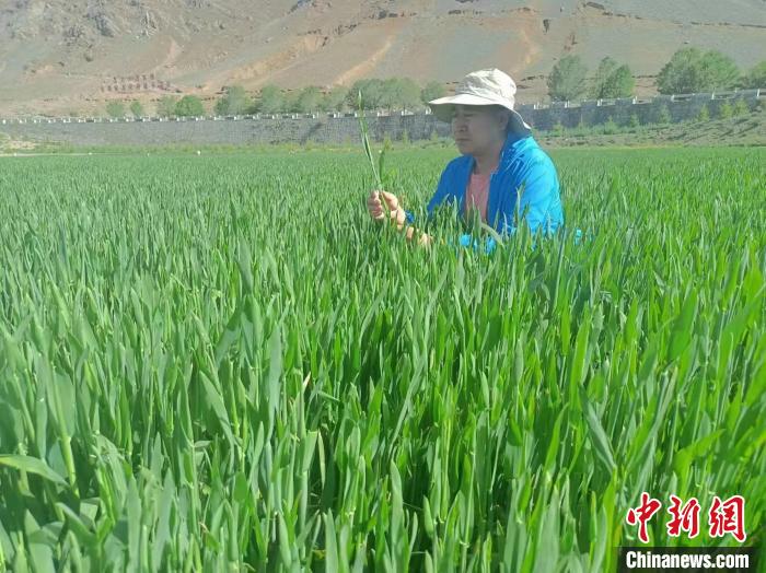 黑龍江農(nóng)業(yè)專家在西藏的青稞田里工作。李德龍 攝