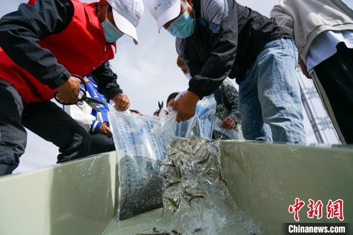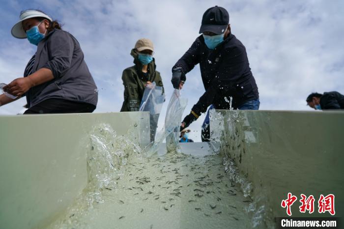 圖為西藏特有魚類增殖放流活動現(xiàn)場?!〗w波 攝