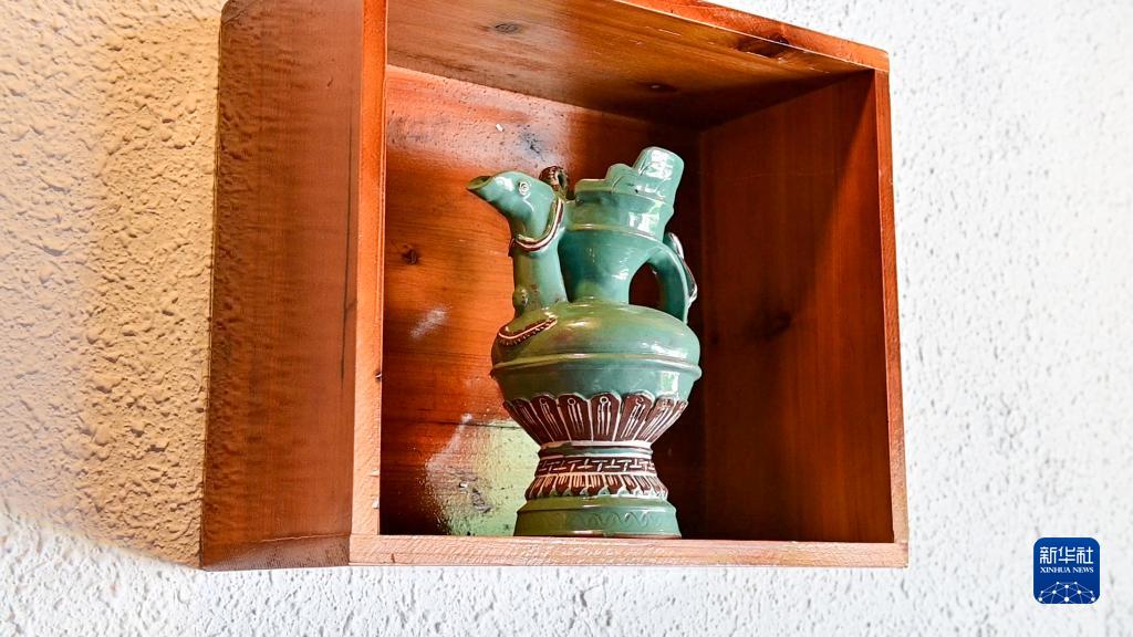 這是洛桑益西開的藏餐店內(nèi)的塔巴陶瓷(6月23日攝)。新華社記者 周荻瀟 攝