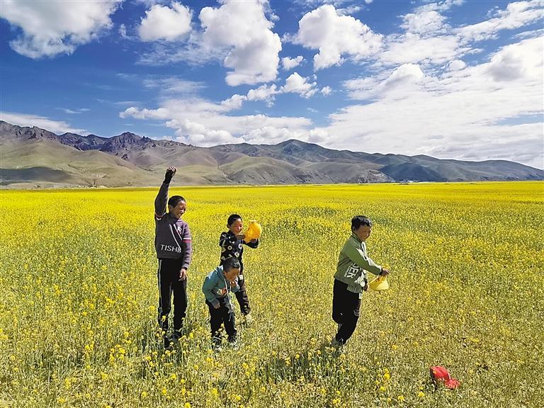 2021年,在中國(guó)科學(xué)院青藏高原研究所和北京林業(yè)大學(xué)專業(yè)研究團(tuán)隊(duì)的幫助下,這里的牧草種植又上了一個(gè)新臺(tái)階——油菜與牧草混合種植。