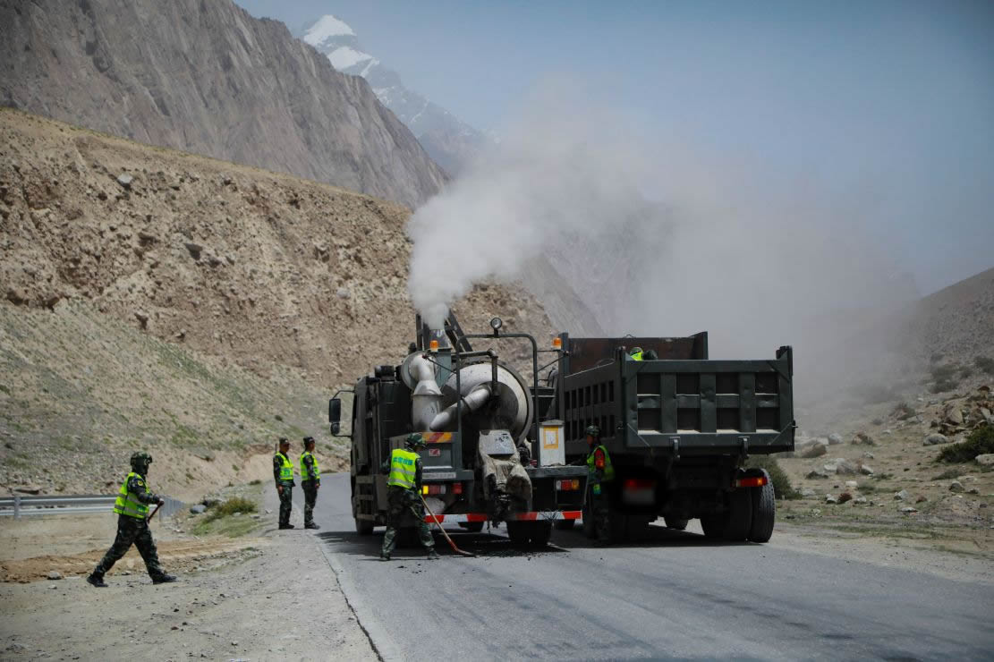對此,該支隊充分利用新疆當(dāng)季天氣較好時機,在新藏公路新疆段600多公里道路進行病害集中治理,官兵們分別在庫地達坂、麻扎達坂、黑卡子達坂、奇臺達坂等多個病害點展開工作。