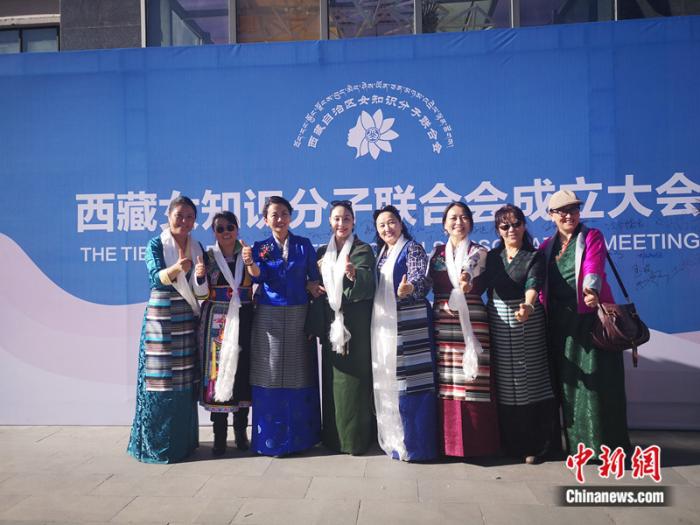2019年,邊巴拉姆(左三)參與成立西藏自治區(qū)女知識(shí)分子聯(lián)合會(huì),并擔(dān)任首任會(huì)長(zhǎng)。受訪(fǎng)者供圖