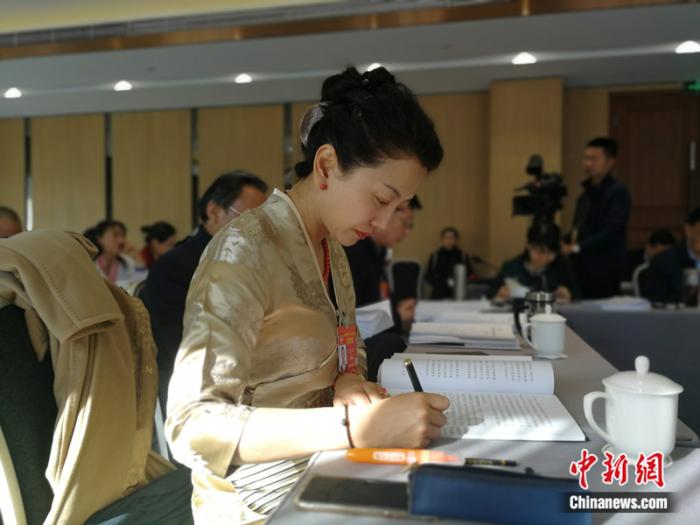 圖為邊巴拉姆在全國(guó)兩會(huì)上參加政協(xié)小組會(huì)。受訪(fǎng)者供圖