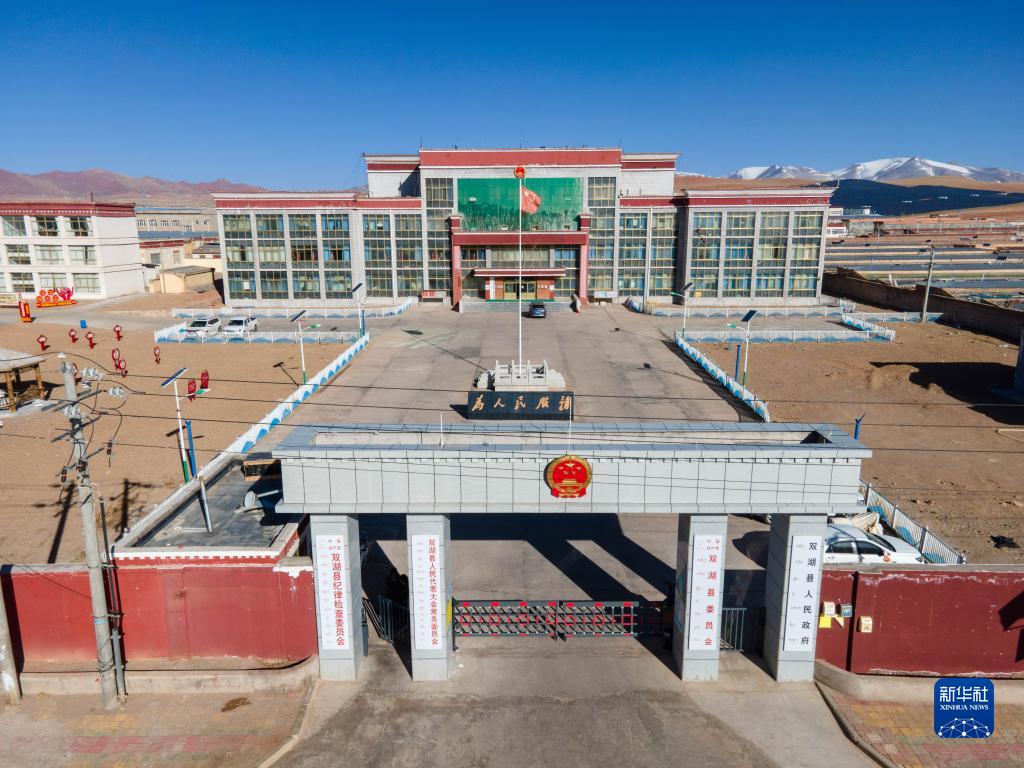 雙湖縣人民政府(3月27日攝,無人機(jī)照片)。新華社記者 周荻瀟 攝
