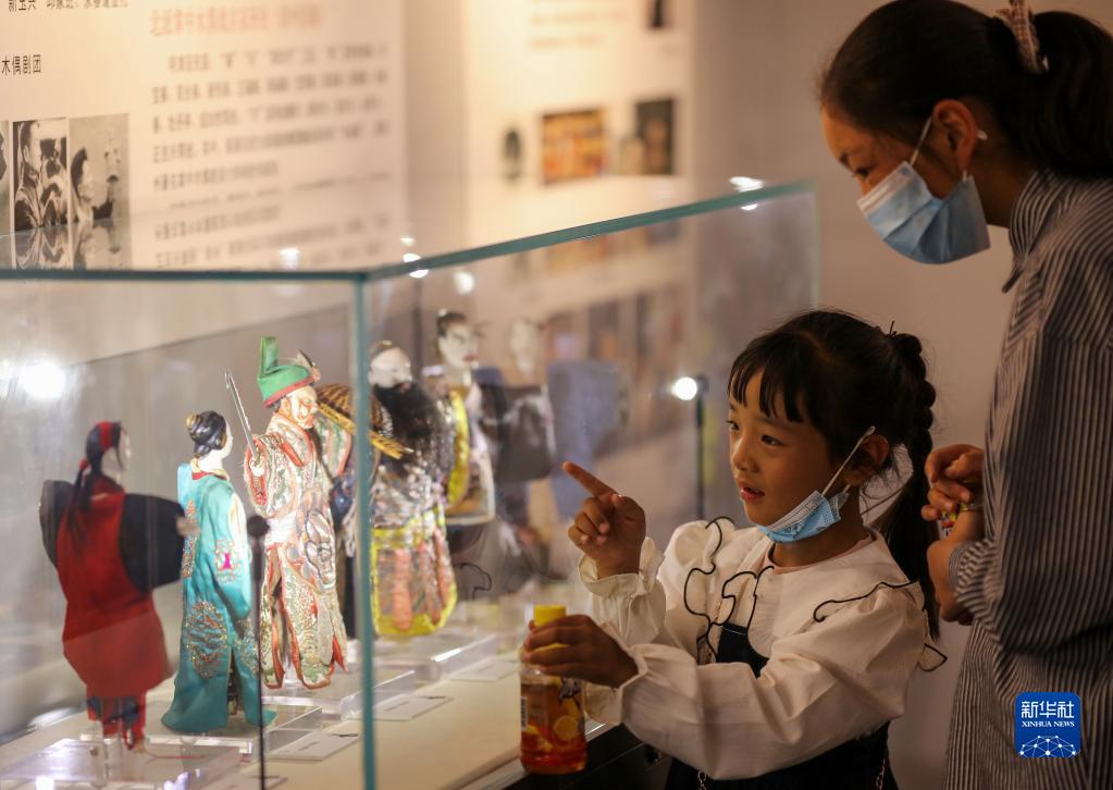 參觀者在木偶藝術展展廳內(nèi)觀賞木偶。新華社記者 姜帆 攝
