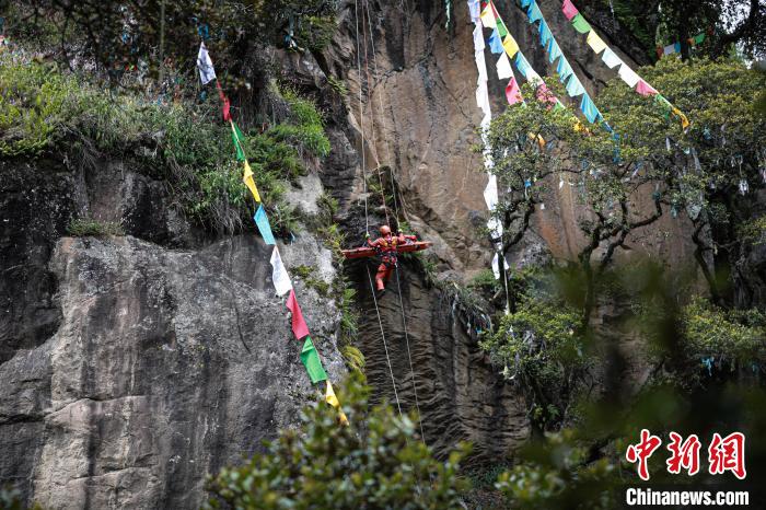 據(jù)悉,垂直崖壁救援是山岳事故救援行動中最難、最危險的科目之一,要求救援隊員在陡峭的崖壁上,尋找保護點、清理崖壁、建立保護站,利用繩索技術,采用垂直提拉系統(tǒng)對墜落谷底的被困人員實施營救。