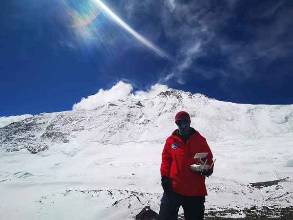 高壇光手持無人機(遙控器)于珠穆朗瑪峰上留影