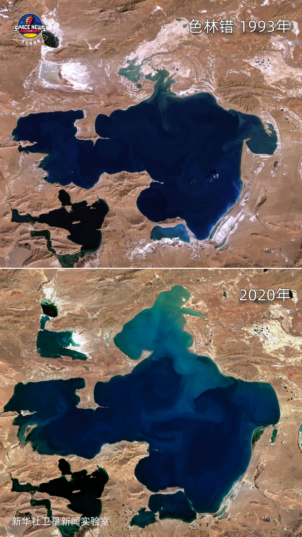 岡底斯山北麓的色林錯(cuò)湖是中國第三大咸水湖,近年由于冰川融水補(bǔ)給量增加,湖泊面積不斷擴(kuò)大,特別是湖區(qū)北部、東南部、南部區(qū)域。