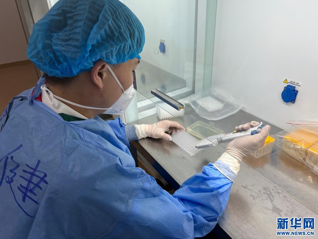 核酸檢測人員在北京援藏抗疫醫(yī)療隊(duì)第二核酸檢測實(shí)驗(yàn)室進(jìn)行核酸檢測(受訪者供圖)。
