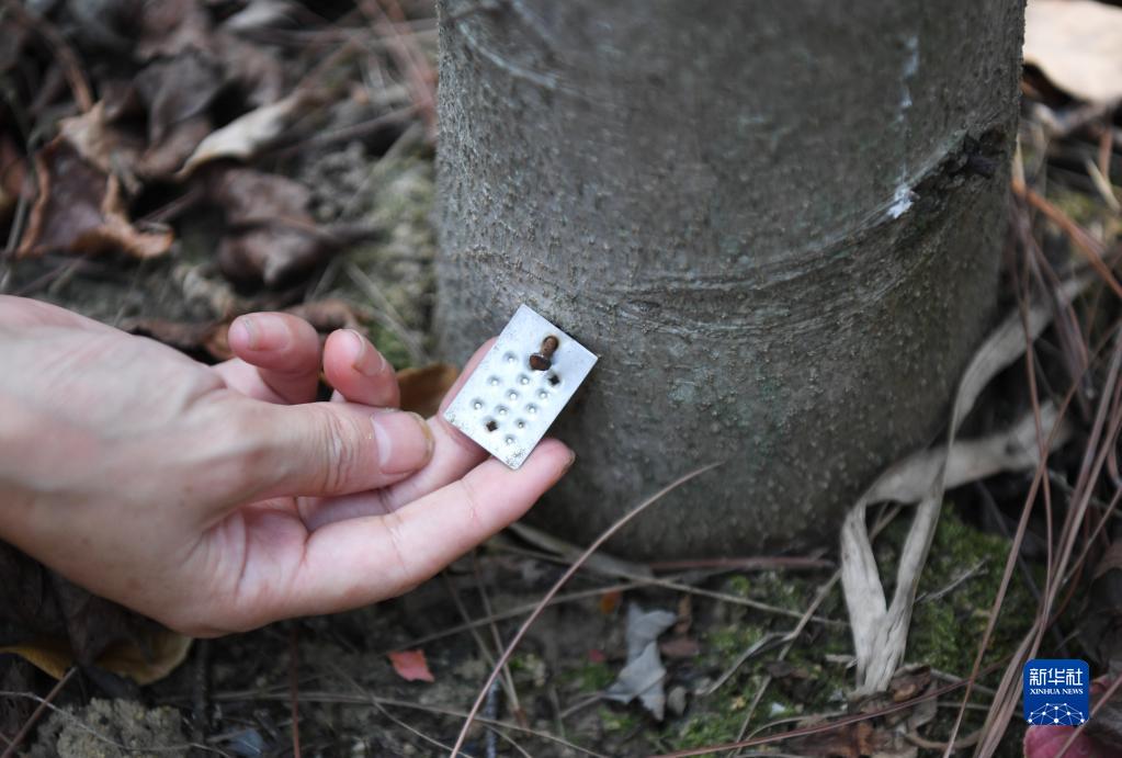 9月21日,在廣東韶關(guān)樂昌市秀水鎮(zhèn)大羅嶺村,白拉曲珍在石漠化生態(tài)恢復(fù)監(jiān)測(cè)平臺(tái)固定樣地查看樹木標(biāo)牌。新華社記者 鄧華 攝