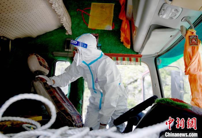 移民管理警察梅凡檢查進入吉隆口岸限定區(qū)域卡口車輛?!⌒じ毁F 攝